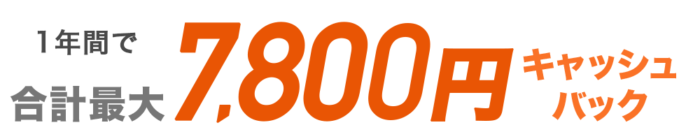 毎月現金100円(合計最大1,200円)をキャッシュバックします。